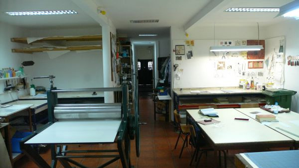 Oficina Água-ForteA oficina está preparada e equipada para a execução de obras de gravura, de serigrafia e de litografia, possuindo:
